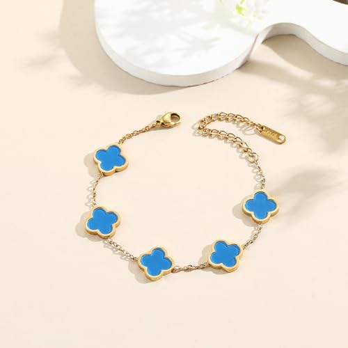 18K Gold Plated Clover Lucky Bracelet for Women White/Black/Red/Green Flower Four Leaf Link Bracelets Trendy Jewelry Gifts for Women