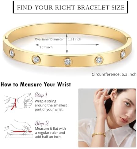 18K Gold Plated Love Friendship Bracelet with Cubic Zirconia Stones Bangle Cuff Best Gifts with Crystal for Mother's Day Valentine's Day Wedding Couples and Birthdays