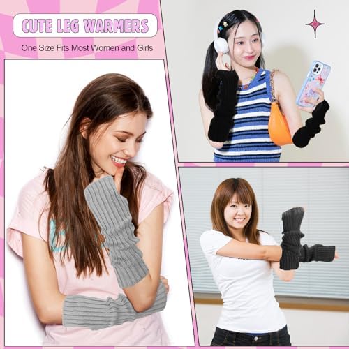 6 Pairs Arm Warmers Kawaii Arm Sleeves Cute Y2k Harajuku Japanese Style Long Fingerless Gloves Arm Covers for Women Girls Lolita Costume School, 6 Colors