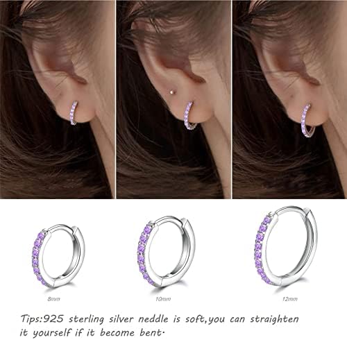 925 純銀小圈形耳環 立方氧化鋯開合式圈形耳環,3 對 14K 白金鍍金軟骨穿孔耳環 耳夾 小圈耳環 男女皆宜