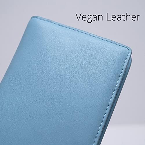 Alldaily超薄皮革女士錢包 RFID 屏蔽信用卡夾 雙折長款女士錢包, 純藍色, 極簡主義