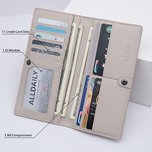 Alldaily超薄皮革女士錢包 RFID 屏蔽信用卡夾 雙折長款女士錢包, 純藍色, 極簡主義