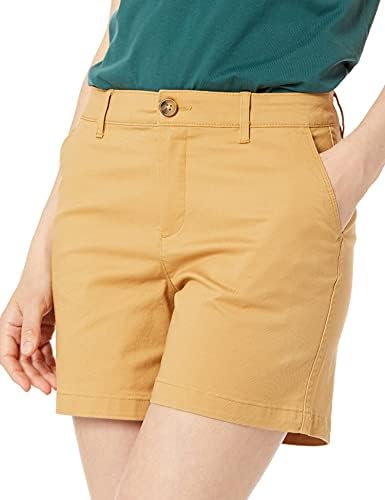 Amazon Essentials 女款 中腰修身 5 吋內縫卡其色短褲(直筒和曲線剪裁可供選擇)