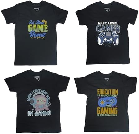 BROOKLYN VERTICAL 5 件組電玩玩家短袖圓領男孩 T 恤,胸前印花 | 柔軟棉質尺寸 6-30
