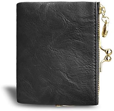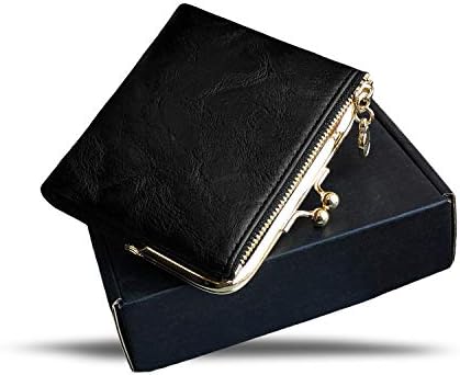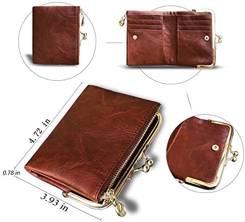 AOXONEL 女款 錢包 小型 RFID 女款 小巧 雙折皮革 復古 零錢包 附拉鍊和親吻鎖
