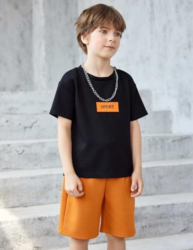 Arshiner 男孩落肩 T 恤和抽繩腰短褲 附鏈項鍊 夏季休閒服裝 (5-12 歲)