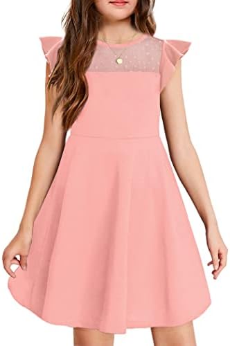 Arshiner 女孩洋裝 夏季荷葉邊袖網眼 A 字型休閒派對洋裝 附口袋 6-13 歲
