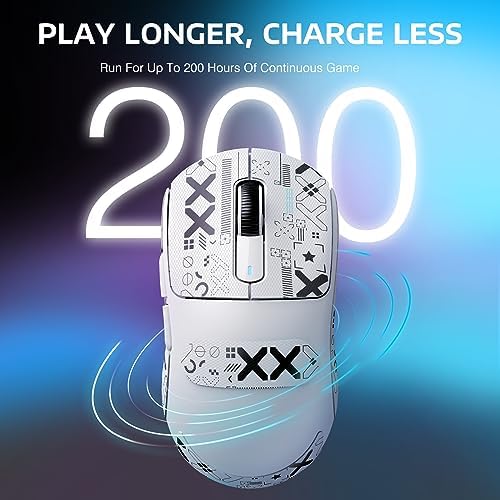 無線遊戲滑鼠 + 握把帶,49 公克三重模式藍牙/2.4G/USB-C 人體工學電腦滑鼠,PAW3395 26K DPI 感應器,200 小時電池壽命,可編程按鈕,PC /筆記型電腦/Mac 遊戲配件