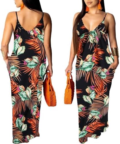 BessCops Summer Maxi Dresses for Women 2024 Plus Size Sundresses Casual Fashion Sleeveless Loose Long Sexy Dress with Pockets