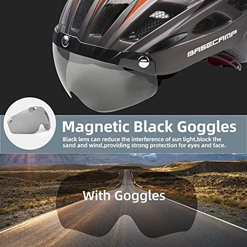 自行車頭盔,Basecamp 自行車頭盔,附後燈和可拆卸磁性護目鏡,輕量自行車頭盔可調節,適合成年男性,女性,山地和道路(BC-069)