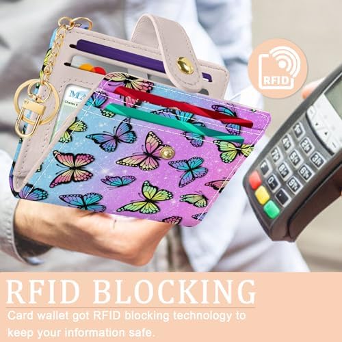 Rfid 女款皮夾,小巧纖薄的信用卡皮夾,PU 皮革雙折現金皮夾,拉鍊零錢袋和證件窗,女女士青少年女孩少女禮物, 黑貓花, 現代