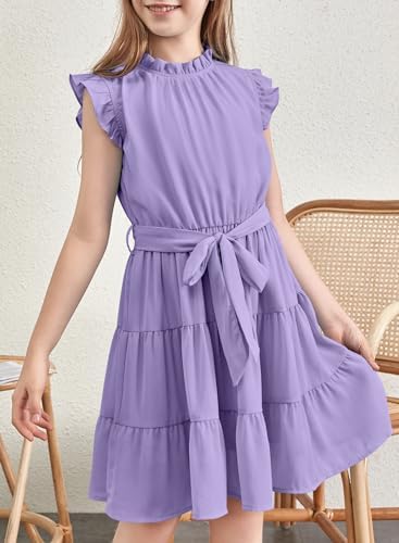 blibean Tween 女孩優雅洋裝 兒童夏季荷葉邊袖洋裝 4-15 歲