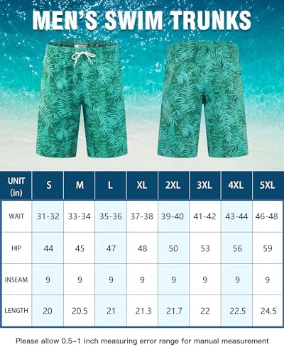 BOJIN Mens Swim Trunks 9" Quick Dry Stretch Swim Shorts Mesh Lining Bathing Suits Swimwear Beach Shorts with Pockets