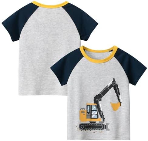 男孩 4 件組挖掘機短袖圓領 T 恤上衣 T 恤尺寸 2-7 歲男童超值棉製 T 恤