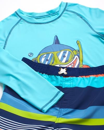 男童防曬套裝 - 2 件式防曬防曬泳褲和游泳襯衫 - 男童泳裝套裝 (4-12)