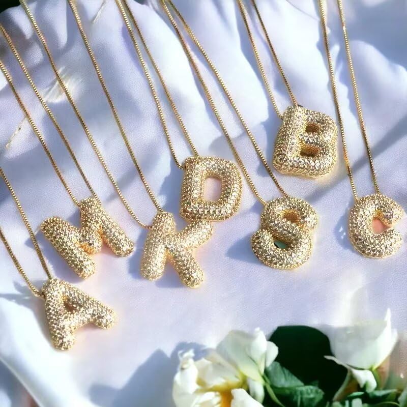泡泡字母項鍊氣球字母字母項鍊,適合女性女孩,精緻字母吊墜,14K 鍍金蓬鬆名字個性化珠寶禮物