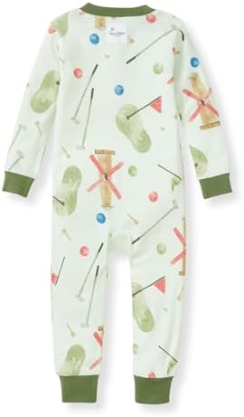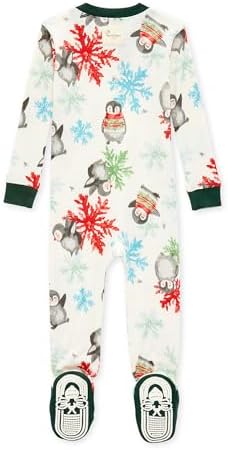 Burt's Bees 男嬰睡衣,正面拉鍊防滑中性腳睡衣,有機棉