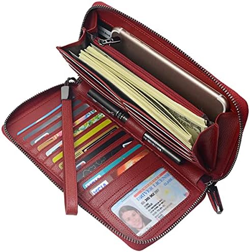 Bveyzi 女款 RFID 防盜 錢包 皮革 拉鍊 手機手拿包 大容量 女款 旅行 錢包 手腕包