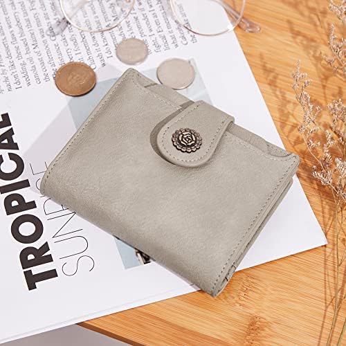 CLUCI 女款 小型錢包 RFID 屏蔽 皮革 三折 小巧 信用卡夾 附證件窗 女士拉鍊零錢包, 米色與棕色, 小巧