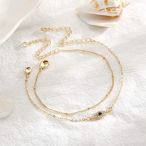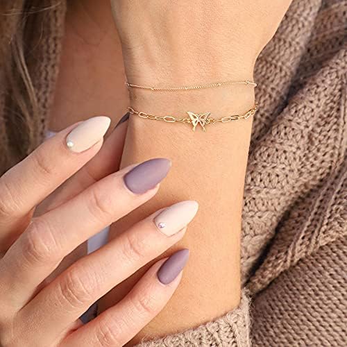 Dainty Gold 女款手鍊,14K 黃金填充可調式分層手鍊 可愛 Evil Eye 橢圓 鍊子 珍珠 長條 烏龜 金色 手鍊 適合女士的珠寶