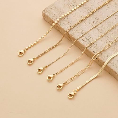 DEARMAY 女款防水金色手鍊組 時尚、精緻 14K 真鍍金 珠寶 時尚 可堆疊 網球 串珠 費加羅人字形迴紋針 鏈接 手鍊組 女款禮物