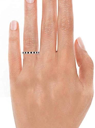 Diamondere 14K 白金天然認證寶石和鑽石結婚戒指 | 女款全永恆可堆疊戒指,美國尺寸 4 至 9 號