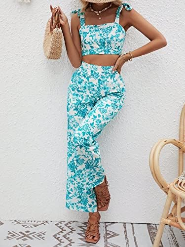 Floerns Women's 2 Piece Summer Boho Floral Print Knot Shoulder Zip Back Crop Cami Top and Maxi Pants Set