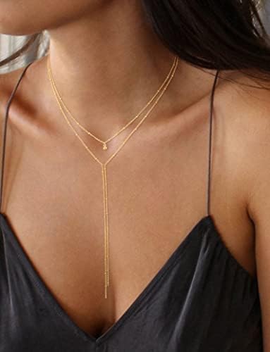 Foxgirl Lariat 女款黃金項鍊,精緻長項鍊 14k 鍍金/銀色 Y 形吊墜項鍊 時尚層次 Cz 串珠鍊墜項鍊 簡約金色珠寶 女性禮物