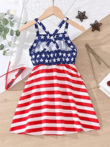 7 月 4 日女孩服裝美國國旗連衣裙交叉背部紅色白色和藍色愛國連衣裙
