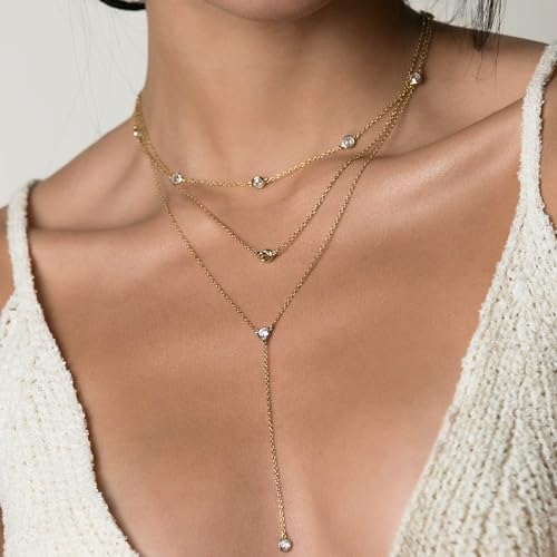 Foxgirl Lariat 女款黃金項鍊,精緻長項鍊 14k 鍍金/銀色 Y 形吊墜項鍊 時尚層次 Cz 串珠鍊墜項鍊 簡約金色珠寶 女性禮物