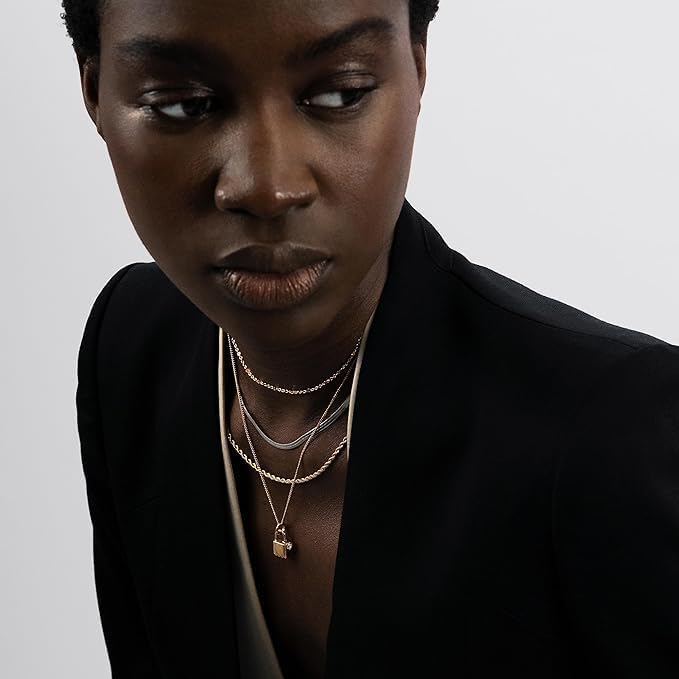 Hey Harper Nassau 項鍊 - 防水防汗 簡單女款項鍊 適合日常穿著 - 銀色、玫瑰金、女款金色項鍊 - 不鏽鋼項鍊 - 人字形鍊,附 14k 金色 PVD 塗層 - 女款項鍊