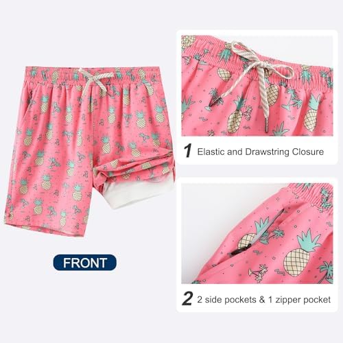 IRELIA 2 件組 男孩 2 合 1 游泳四角褲 四角褲 內襯 壓縮游泳短褲 快乾泳裝