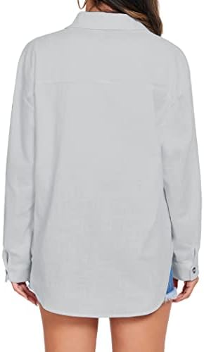 HOTOUCH 女款 棉質 鈕扣 襯衫 休閒 長袖 寬鬆 合身 有領 亞麻 工作 襯衫 上衣 附口袋