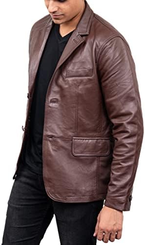 Jild 羔羊皮夾克男士休閒外套 – 缺口領經典邦德風格終極皮革西裝外套 男款