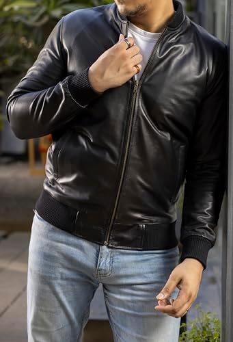 Jild Varsity Style Leather Bomber Jacket Men - Genuine Lambskin Men's Casual Fashion Classic MA-1 Leather Jacket