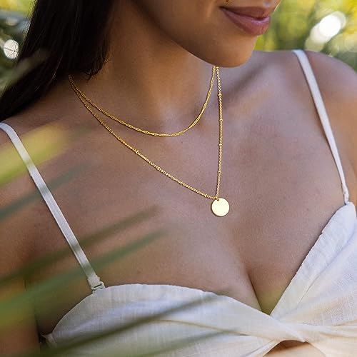 女款多層金項鍊 可堆疊 精緻 14K 真鍍金/銀鍊項鍊 層次 海灘 可愛 時尚 墜飾 項鍊 時尚 珠寶組 禮物 適合女性 青少年 女孩