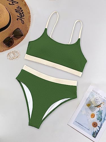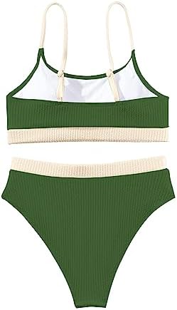 Lilosy 高腰收腹羅紋比基尼露臍上衣巴西泳裝套裝 2 件組