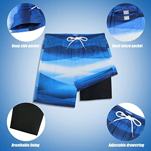 IRELIA 2 件組 男孩 2 合 1 游泳四角褲 四角褲 內襯 壓縮游泳短褲 快乾泳裝