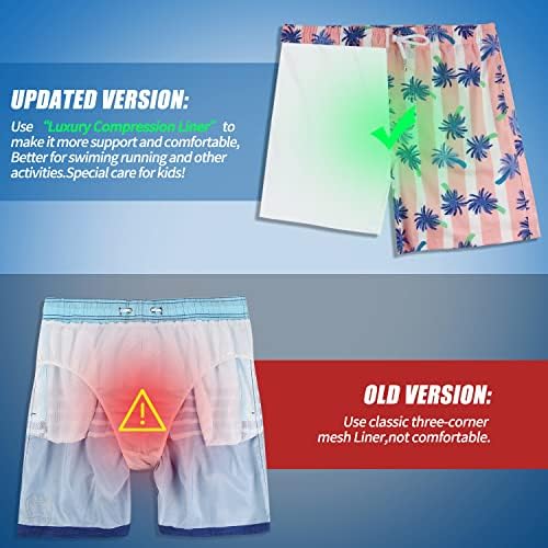 LUCOWEE 男童泳褲附四角內褲內襯壓縮防摩擦游泳短褲彈性 UPF 快乾泳裝
