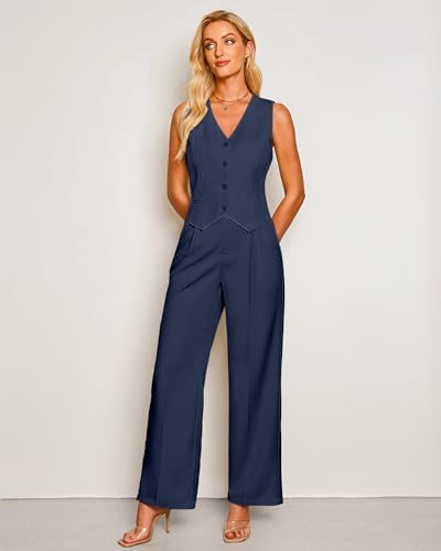 PRETTYGARDEN Womens Sleeveless Suit Vest And Wide Leg Pants Business Casual Blazer Set
