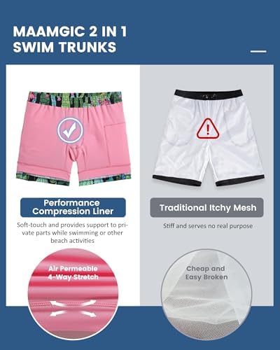 maamgic 男款 5 英吋(約 10.5 公分)彈力游泳短褲 壓縮內襯游泳褲 泳裝 沙灘服 泳衣