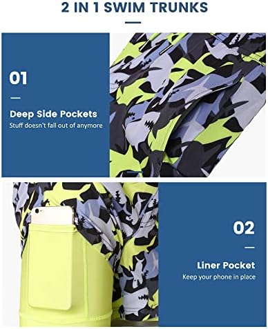 IRELIA 2 件組 男孩 2 合 1 游泳四角褲 四角褲 內襯 壓縮游泳短褲 快乾泳裝