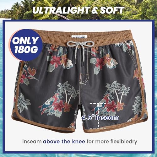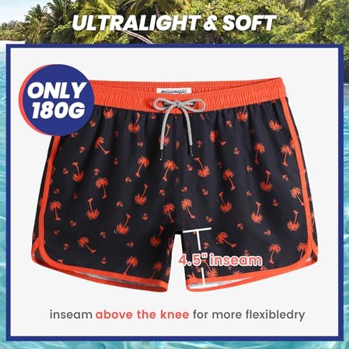 maamgic 男款 男孩 短 80 年代 90 年代 復古 泳褲 網眼內襯 快乾 泳衣 衝浪短褲