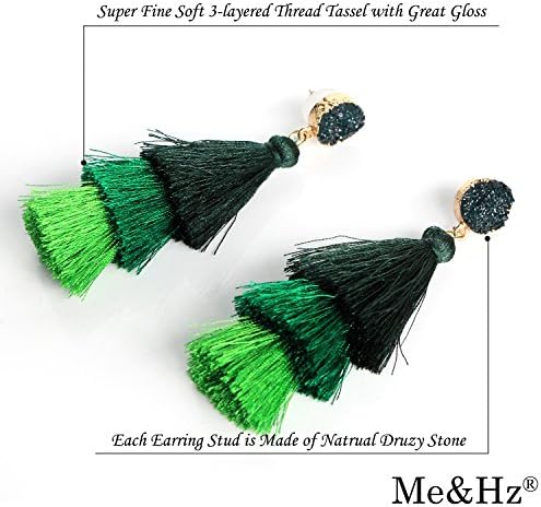 Me&Hz 彩色層次流蘇耳環 波西米亞層次流蘇 Druzy 耳釘 適合女性 青少年 女孩 聖誕節 母親節禮物