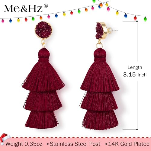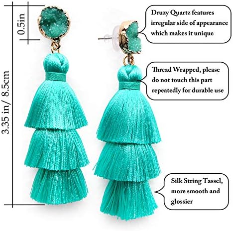 Me&Hz 彩色層次流蘇耳環 波西米亞層次流蘇 Druzy 耳釘 適合女性 青少年 女孩 聖誕節 母親節禮物