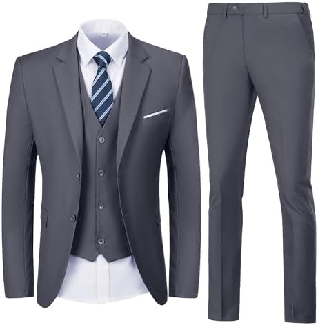 Men's 3 Piece Slim Fit Suit Set, Two Button Blazer Solid Suit Jacket Vest Pants Tuxedo Set for Wedding Prom