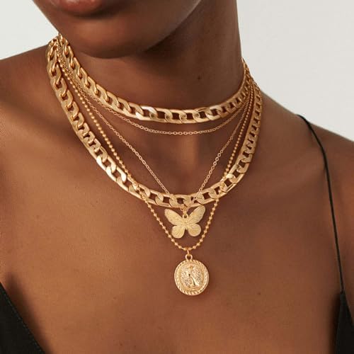 MJartoria 女款金色分層項鍊 時尚復古硬幣吊墜項鍊 精緻粗細的鏈項鍊項鍊 適合珠寶 生日禮物