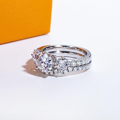 莫桑石 結婚戒指 新娘套裝 3.7CTTW D 顏色 VVS1 淨度 圓形 明亮切割 莫桑石 鑽石 S925 純銀 結婚戒指 訂婚戒指 附證書