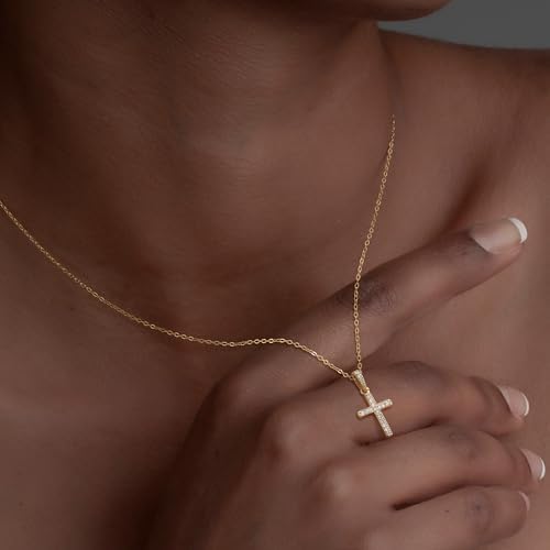Moodear 女款十字架項鍊 - 精緻 14K 鍍金/純銀分層十字架吊墜 簡約可愛項鍊 適合女性 時尚珠寶禮物