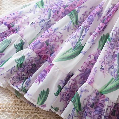 NNJXD 小女孩花卉洋裝 公主女孩 Casaul 印花 A 字裙